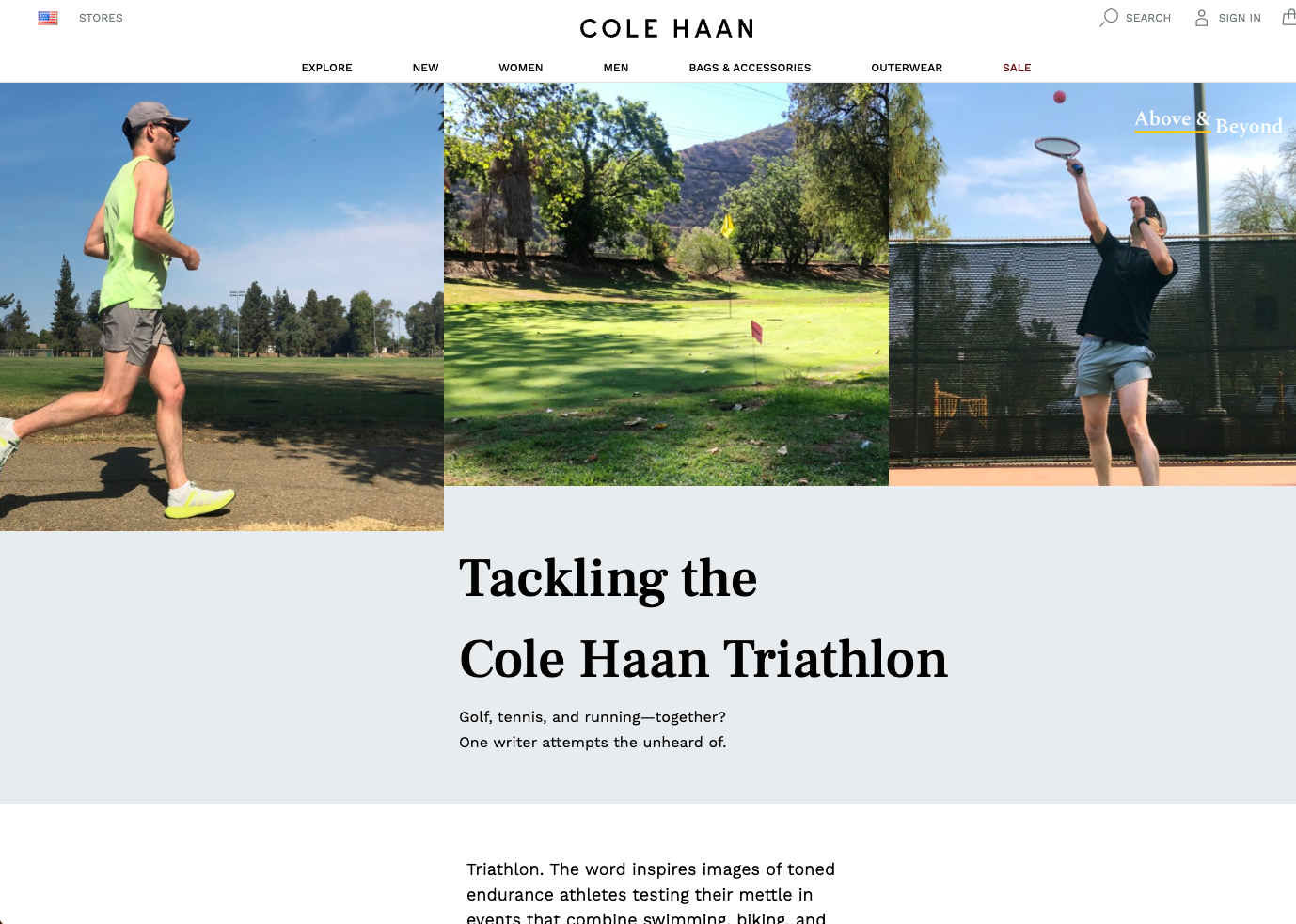 Content on Cole Haan’s Above & Beyond blog tied directly to active campaigns. During my time there, I pitched and wrote editorial stories supporting launches for their new golf, hiking, trail-running, and tennis shoes.